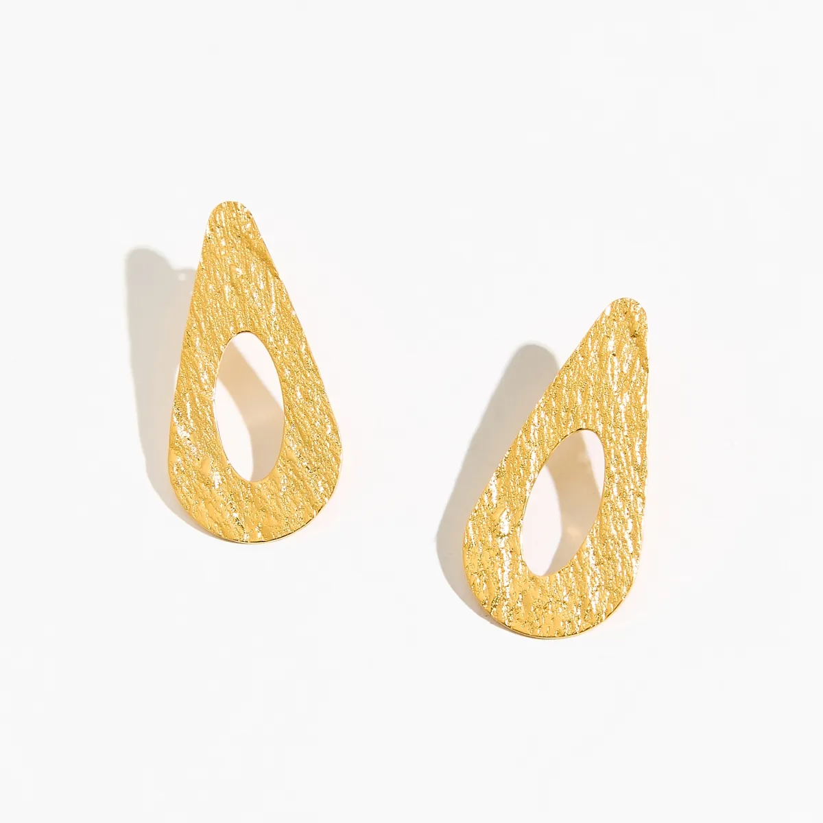 Χρυσά Σκουλαρίκια Liquid Metal – Ανάγλυφες Σταγόνες Statement