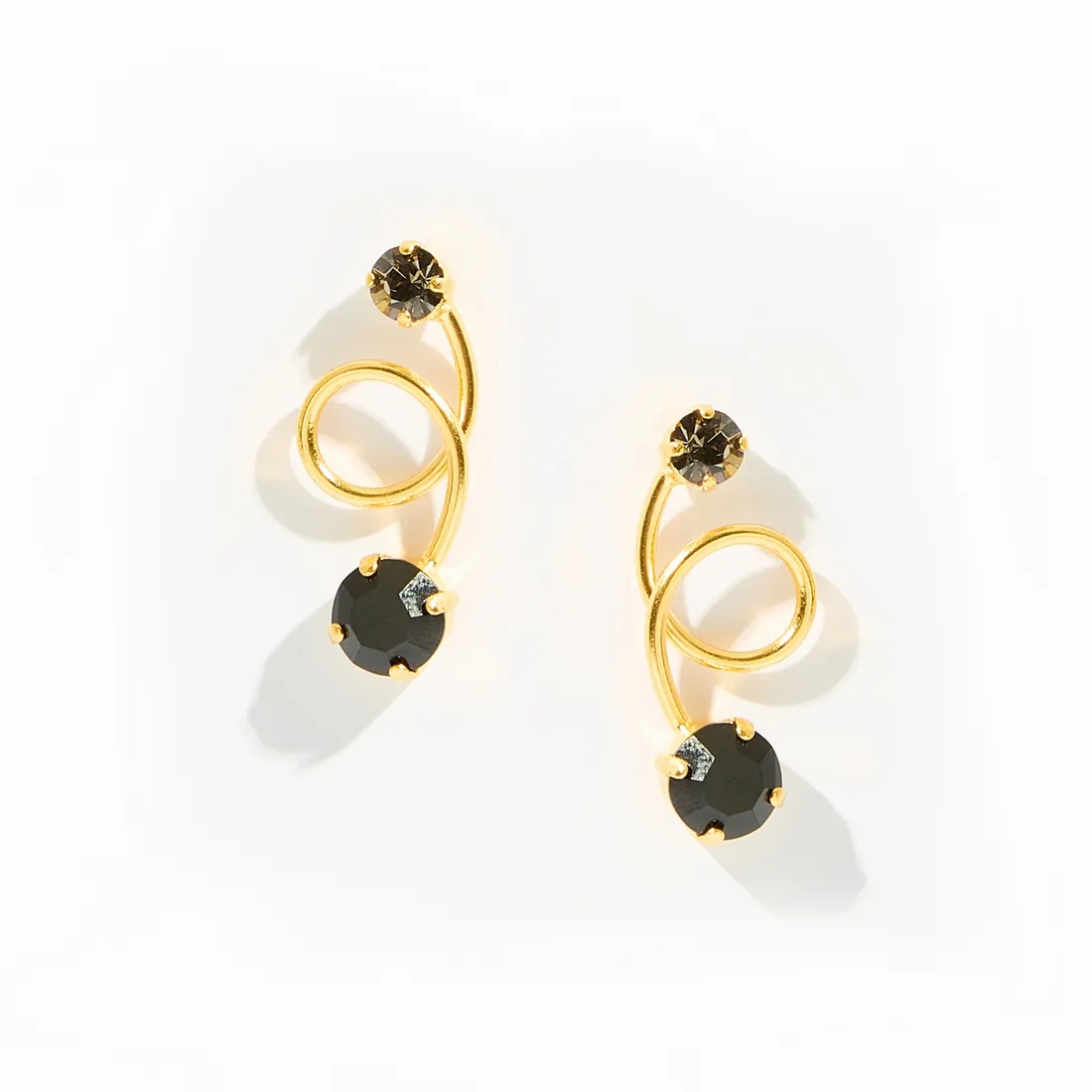 Χρυσά Σκουλαρίκια Luna Twist με Διπλές Πέτρες | Μαύρο και Καφέ