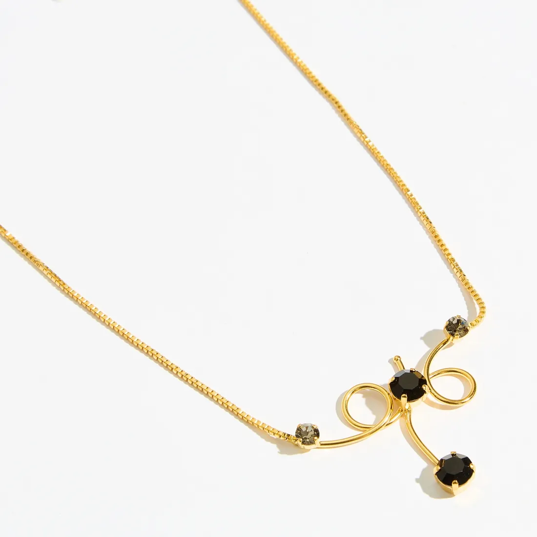 Χρυσό Κολιέ Luna Twist με Μαύρες Πέτρες