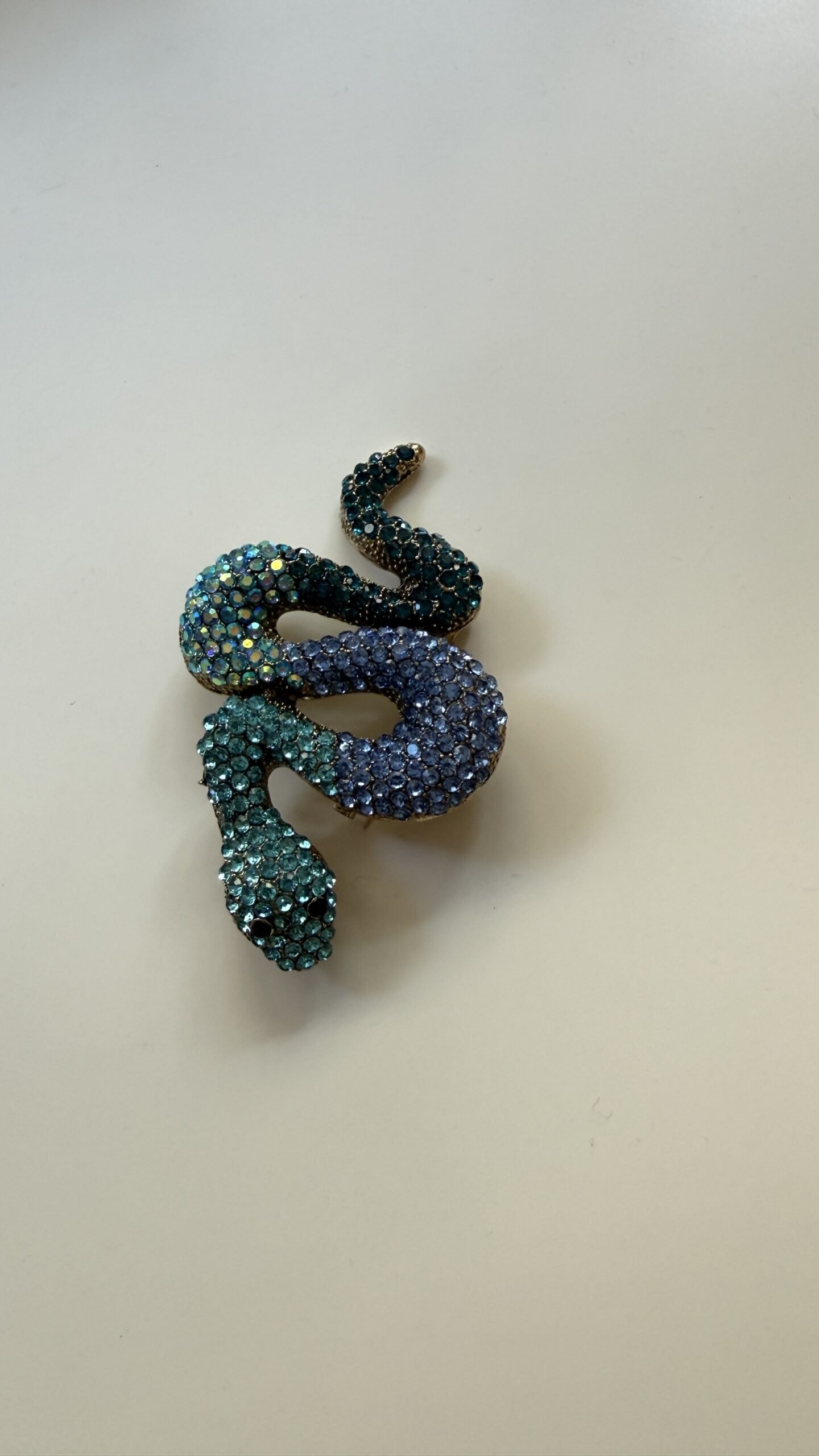 Kαρφιτσα φιδι με strass, μπλε τυρκουαζ και πρασινο