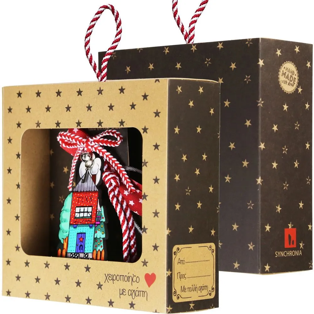 Χειροποίητο Ξύλινο Γούρι “Σπίτι Ψηλό Τύχη” – Στολίδι Τύχης με Κουτί Δώρου