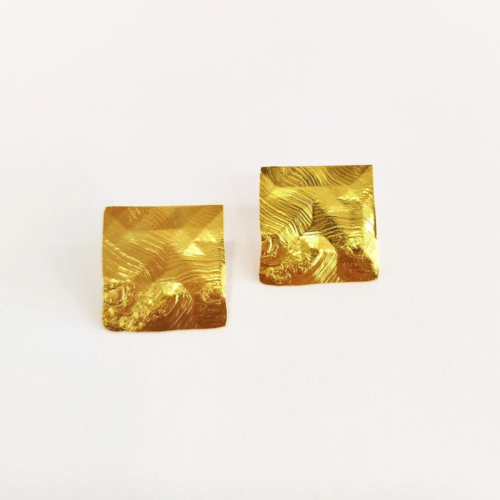 Χειροποίητα Σκουλαρίκια Waves Spirit – Ανάγλυφα Χρυσά Τετράγωνα